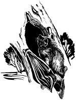 The silver-haired bat lives in forested areas near streams and lakes. Similar in size to the red bat, the silver-haired species is black or dark brown with silver on the tips of its hairs. Considered scarce throughout their statewide range, the silver-haired bat is most easily identified by its slow flight, which is typically low to the ground. A solitary species, females are thought to establish nursing colonies in June and July when they give birth to two young. A southern migrant, the silver-haired is preyed upon by skunks and great-horned owls.
